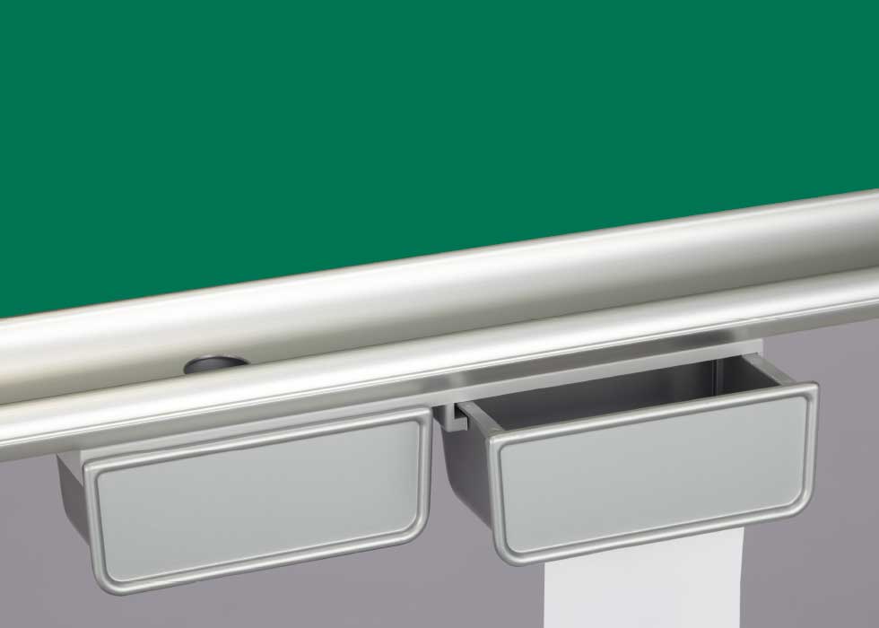 特別教室の正面黒板に最適な安全性を重視した上下式黒板&ホワイトボードです。