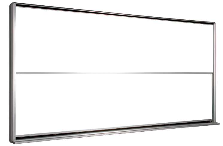 ニチガクオリジナルデザインのアルミ枠。縦フレームは、固定ネジが見えません。コーナー部分は、樹脂パーツを採用。